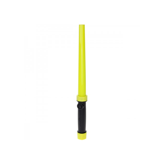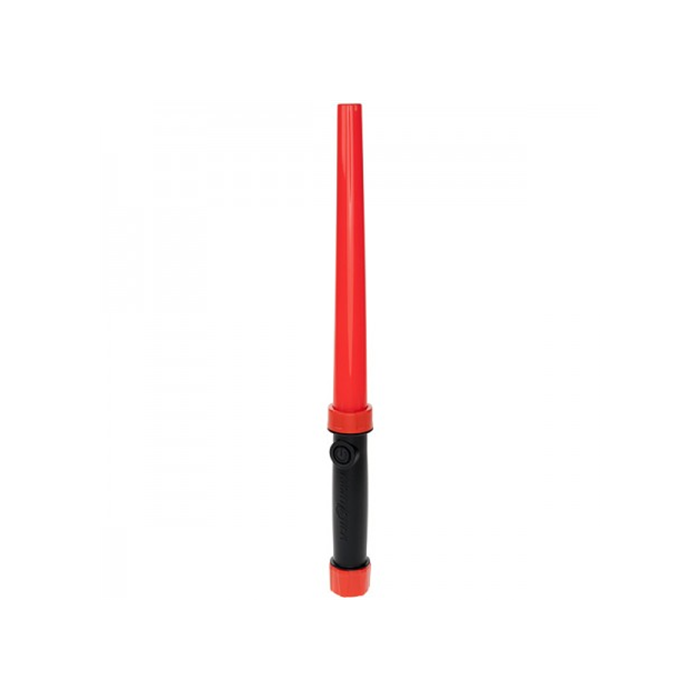 The Model 1632 LED Red Traffic Wand features a bright lumen output with a red cone and a black-formed handle for ultimate grip and comfort. Body mounted push button controls the on/strobe/off lighting functions. Pressing the button once, turns the light on constant-on mode, pressing the button a second time causes the light to strobe, and a third press of the button turns the light off. Power comes from 3 premium AAA batteries (included). This lightweight nightstick is ideal for day or night applications and is the perfect choice for air ground crews, directing traffic, or marking a potentially hazardous area.