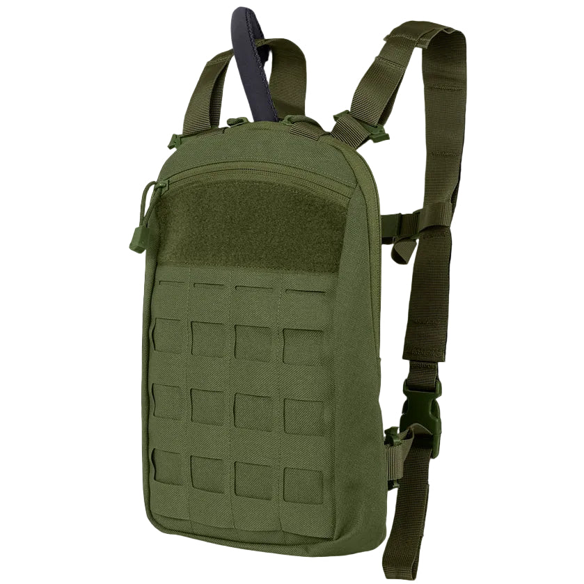 Its wide zipper opening ensures easy access to the bladder, supporting up to 1.5 liters of hydration, and an exterior pocket provides space for essential gear. The carrier also includes a removable shoulder strap with a sternum strap for added comfort and stability, whether in a tactical vehicle or on foot.