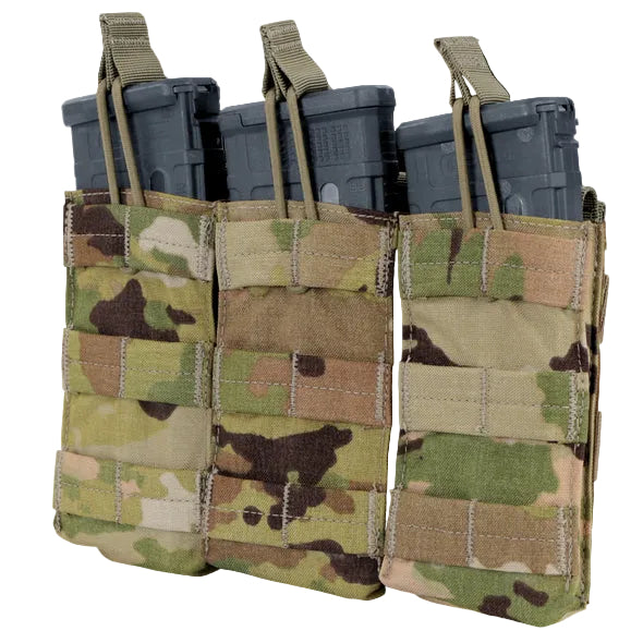 The open-top design allows for immediate access, while the front webbing adds space for modular attachments, enhancing its overall functionality. Fully MOLLE compatible, this pouch easily integrates with your vest or belt setup, offering ample magazine capacity without sacrificing mobility.